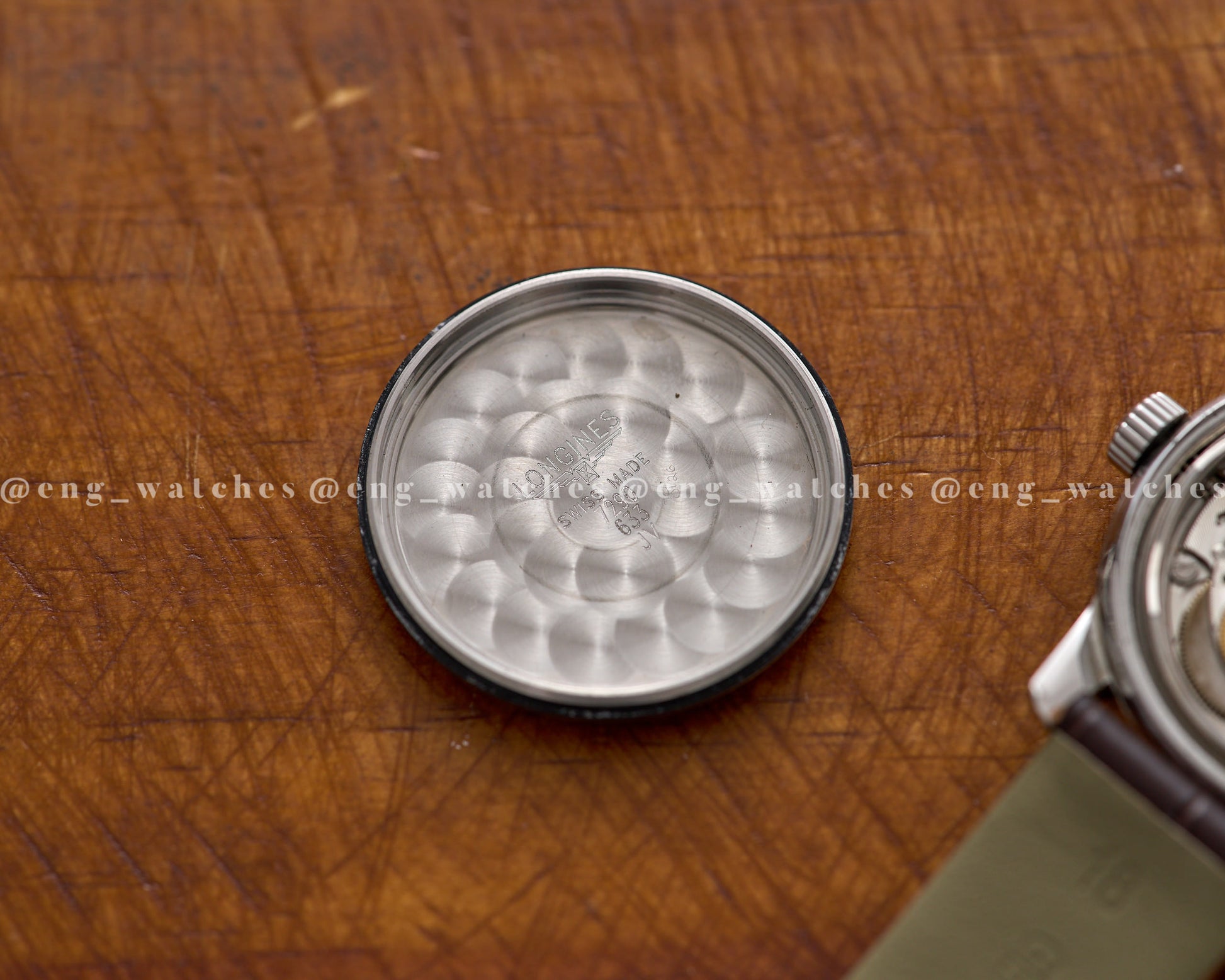 Uma característica central deste modelo é a janela de data posicionada às 12 horas, uma escolha de design que realça a simetria do mostrador e confere ao relógio uma aparência única dentro da linha Conquest. Essa posição da data não apenas facilita a leitura imediata da informação, mas também dá ao mostrador um equilíbrio visual que muitos colecionadores apreciam, especialmente em um relógio esportivo-elegante como este.